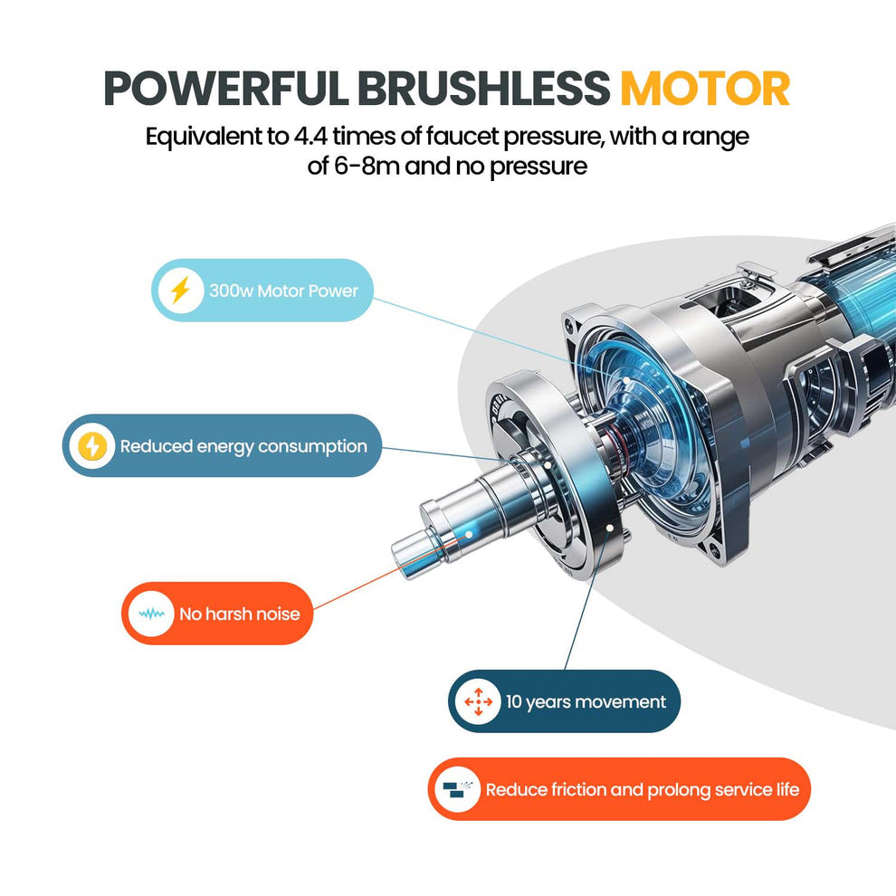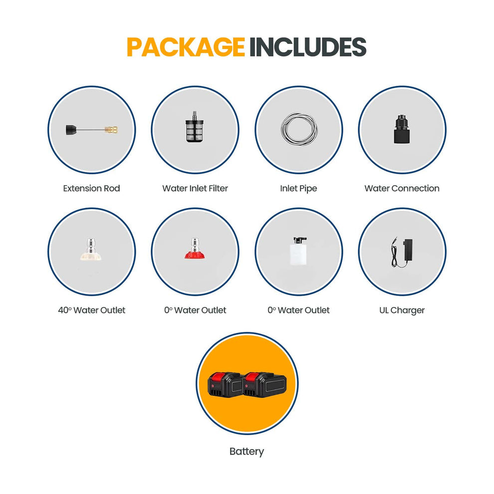 - LIGHTWEIGHT AND EASY TO ASSEMBLE - This high pressure cordless washer is comes with a 5M hose that are easy to store. Compared with traditional washing machines, our cordless pressure washer are lighter and more portable. Just spent a few minutes to complete the installation and start your work.